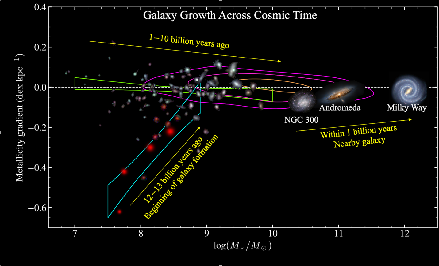 By combining the latest observations from the James Webb Space Telescope (JWST) with nearly half a century of Hubble Space Telescope data and contributions from multiple ground-based observatories, astronomers at Tsinghua University have mapped the metallicity gradients from the early Universe to the nearby galaxies. During the 13 billion years of cosmic history, the distribution of heavy elements has caused unique signatures in galaxies.