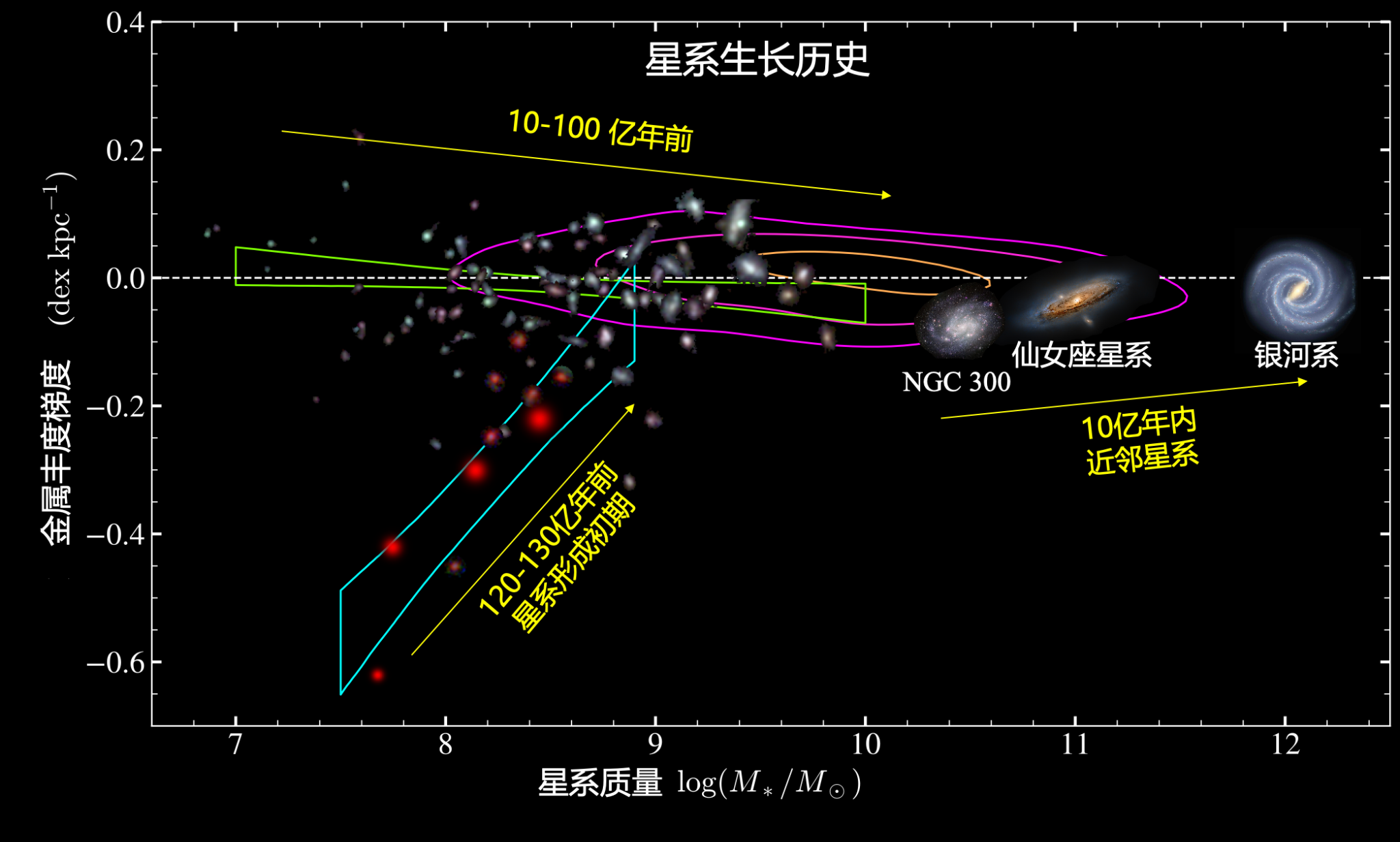 宇宙早期:星系重元素“内高外低” – 星系“由内向外”的生长