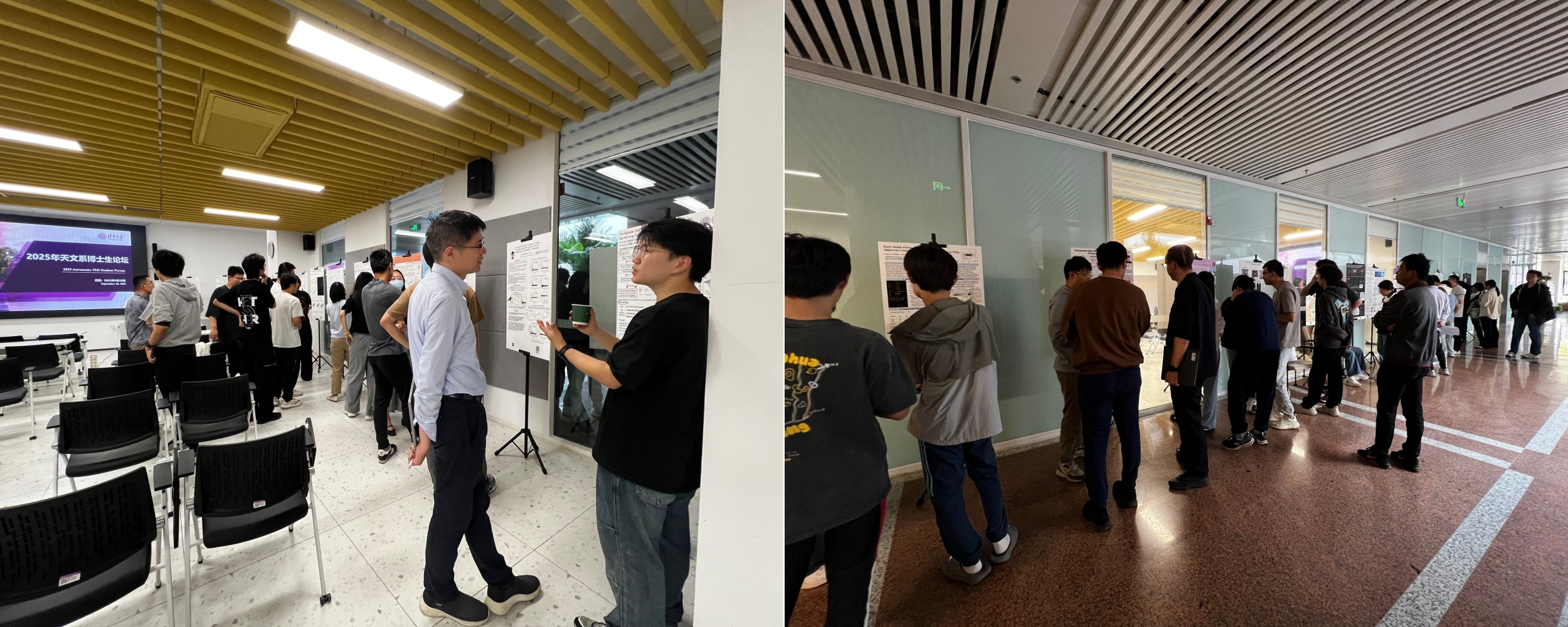 活动现场,海报展区成为了交流的核心地带。与会师生穿梭于各具特色的海报前,与作者进行一对一、面对面的深入探讨。提问环节思维活跃,从研究思路、技术难点到未来展望,讨论极为热烈。本次论坛的成功举办,不仅是一次阶段性研究成果的集中展示与检阅,更是一场学术的盛宴。极大地激发了全系研究生的科研热情,营造了潜心钻研、勇于探索的浓厚学术氛围,有力推动了天文学科人才培养质量的提升。