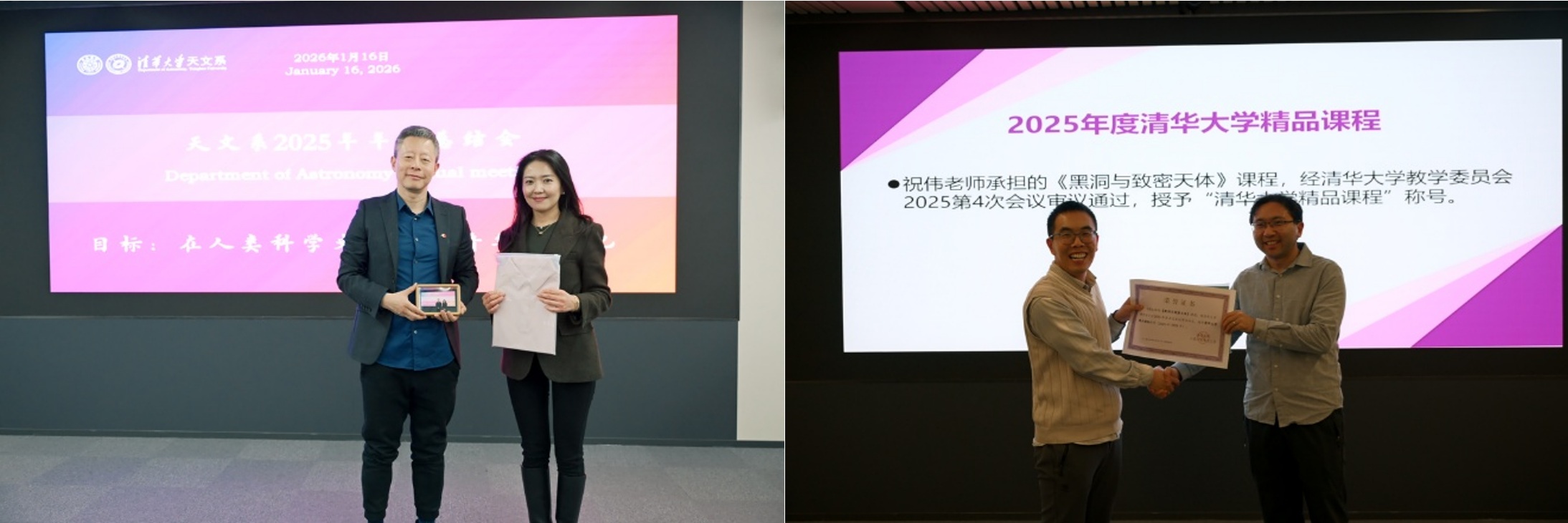 2026年1月16日下午,清华大学天文系 2025 年度总结大会在物理楼 E100 举行。奖学金捐赠方AMD公司大中华区政府事务部高昂女士出席会议。会议由天文系副系主任茅奕主持,天文系师生博后共计 100 余人参加,与特邀嘉宾欢聚一堂,共同回顾过去一年的奋斗历程,展望未来发展蓝图。